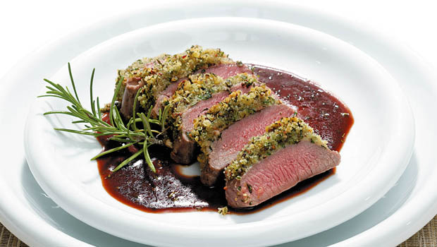 lamm mit kräuterkruste und balsamico rotweinsauce